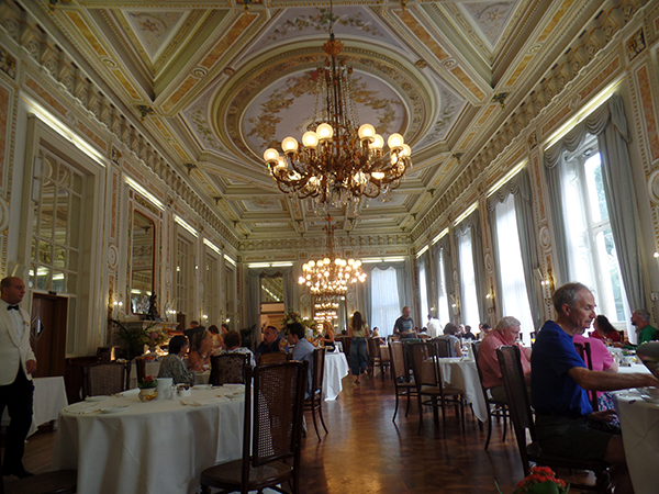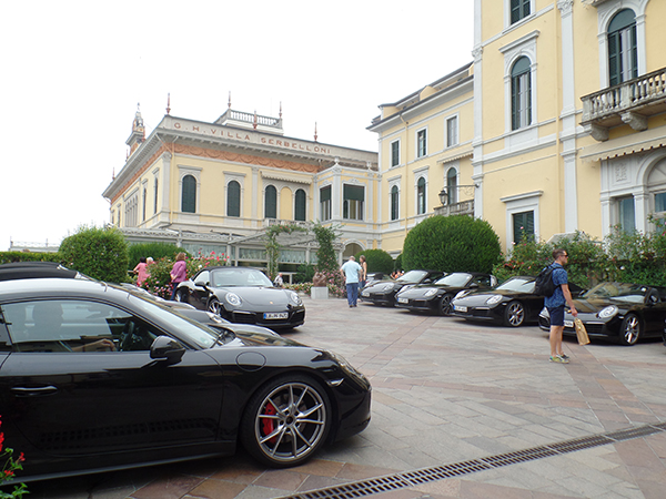 We checked in at our five star hotel, Grand Hotel Villa Serbelloni. Approaching the hotel I knew we were not in Kansas anymore. Seventeen new black Porsche Carreras in several different models were parked in the entry square. These belonged to guests, we were to learn. Once inside the lobby we were instantly transported to another time in Europe, when old world elegance was the norm in grand estates such as this. The Concierge informed me the hotel was built around a 200 year old villa and opened in 1874. At that time the guest wings were added to the main structure that now houses the offices, restaurants and suites. It features a one star Michelin restaurant, and one would think they were staying with the rich and famous along with occasional royalty that traversed Europe throughout the 19th century. While not a large hotel on the scale that is often seen in major cities, it is extremely well appointed and provides impeccable service.
