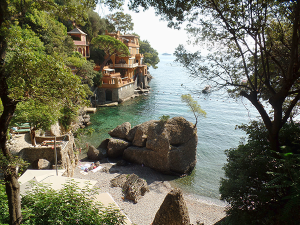 A wedding took us to the Italian Riviera. Our hotel, the Santa Margherita Palace, describes itself as “a design hotel, combining the new luxury trend with Riviera traditional style, in the city center of Santa Margherita Ligure, just a few steps from the beach and harbor, 5 km from Portofino.” This is a tacit admission that Portofino is where everyone wants to be, but can’t because it is so small. And that is why Portofino is the attraction and not Santa Margherita Ligure – exclusivity. In our short stay for the wedding we found Portofino charming and elegant. But after the first hour the question is what are we going to do now? We’ve seen it all. We can wander the same shops and spend more money. Eat something and the food was excellent, but not entirely unique. The rehearsal dinner was at Il Pitosforo, which overlooks the tiny harbor. It was about a fifteen minute boat ride along the coast from Piazza Martini della Liberta dock, and the Portofino dock is directly in front of the restaurant. Il Pitosforo is up on the second level and is a great place for an event as the location says it all. But we found the lack of air movement (fans would have been helpful) distracting in early September. Too hot to be comfortable. Too crowded to move around, and too loud, once the music cranked up after the meal to have a conversation even with the person sitting next or across from you. Of course the size of our party and the fact it was an event, may have been part of the problem, but not entirely.